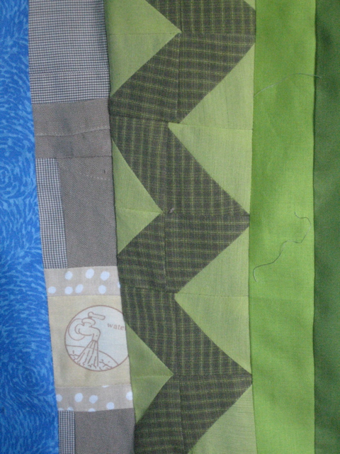 Well I finished the State of Oregon quilt top yesterday and put it together today. It looks a bit overwhelming at this point so I’ll just show you some details. Here’s a bit of western Oregon and Crater Lake: