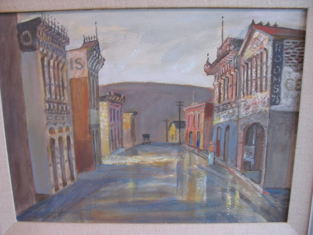 (Painting called “Virginia City Street” by Charles Heaney, now in the collection of the Hallie Ford Museum of Art as a gift of Marge Riley.)
