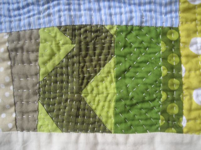 I’m interested in an Indian form of quilting called “kantha” practiced by Bengali women(“urban and rural” so the internet says.)  It began as a way to make quilts from old fabrics…layers and layers stitched together for reuse.  The fabrics would be spread on the ground, smoothed and loosely sewn together.  Then the women could carry the piece around with them, working a little whenever they had the chance.  And that is exactly what I’m doing!  The stitch used is a simple running stitch in many combinations: