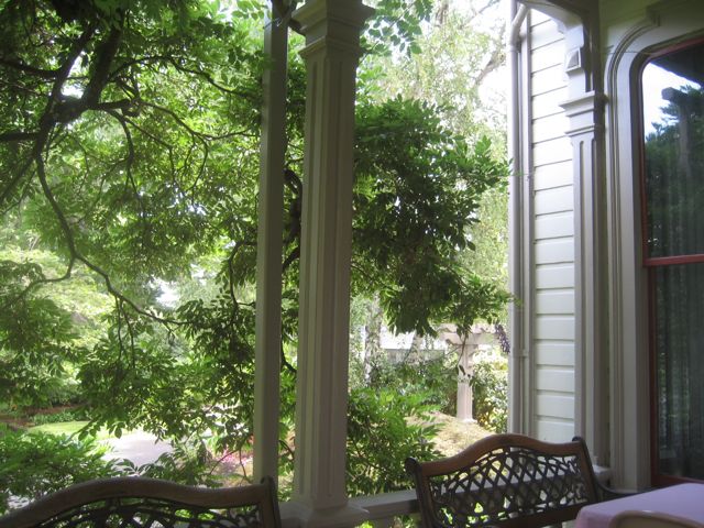 Tea at Bush House August 11, 2010bonniehull We were a merry band on Monday having tea on the front porch of the beautiful Bush House Museum. Volunteers all in various capacities, we enjoyed the company, the most AMAZING wisteria plant ever, and the view: Share this: Click to share on Facebook (Opens in new window) Facebook More Click to email a link to a friend (Opens in new window) Email Like Loading... Related
