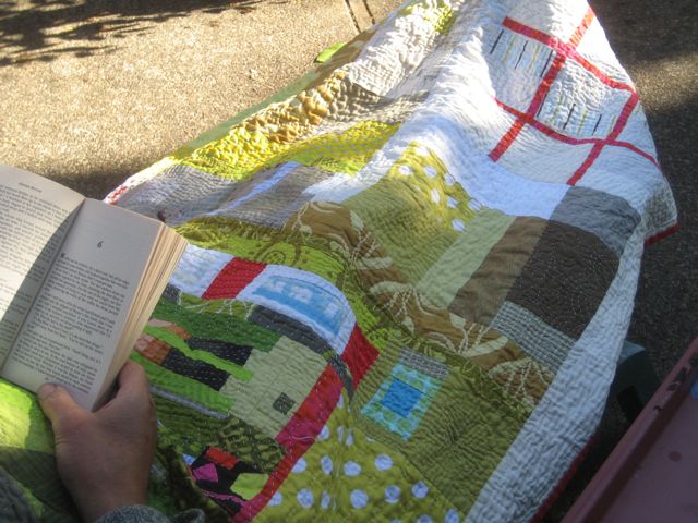 As luck would have it the late afternoon had turned cool and I noticed the reader had goose bumps so the quilt went to work: