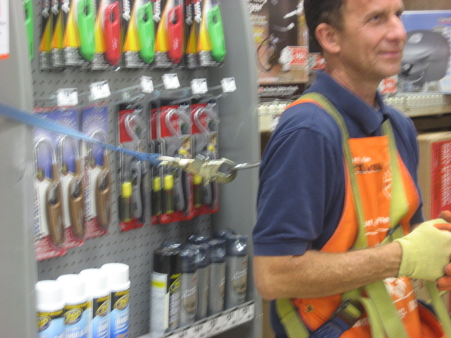 We got it out at Home Depot where we noticed they keep their employees on a short tether: