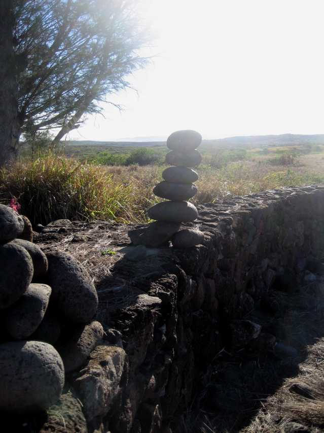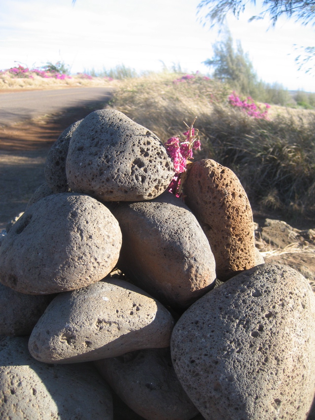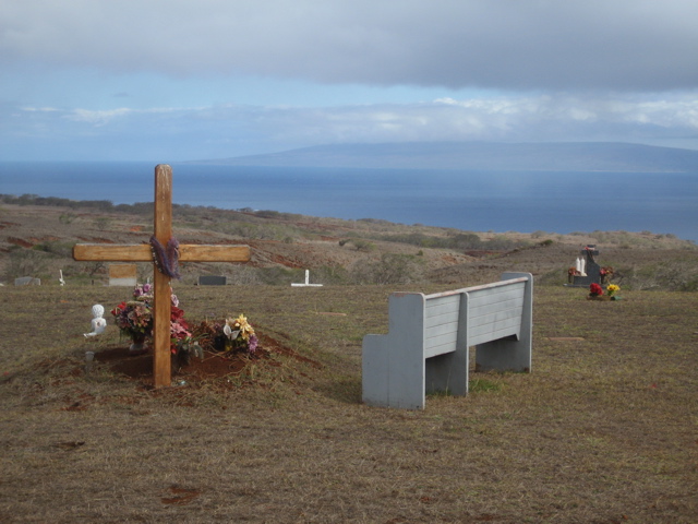 the truth is Molokai has issues resulting from years of growing pineapples which deplete the soil (no pineapples are grown here now…too expensive to ship from Hawaii) and water issues. The entire eastern half of the island is totally arid. We found a few places we loved including this native cemetary on a dirt road (island of Lanai visible in the background):