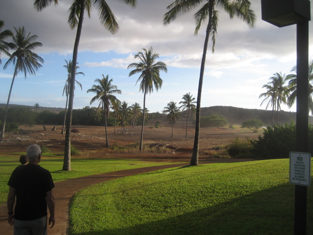 Ke Nani Kai on Kepuhi Bay used to be surrounded by a golf course going right down to the beach but in 2008 the water was turned off, and though the condos are beautifully maintained, the golf course is toast: