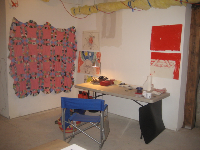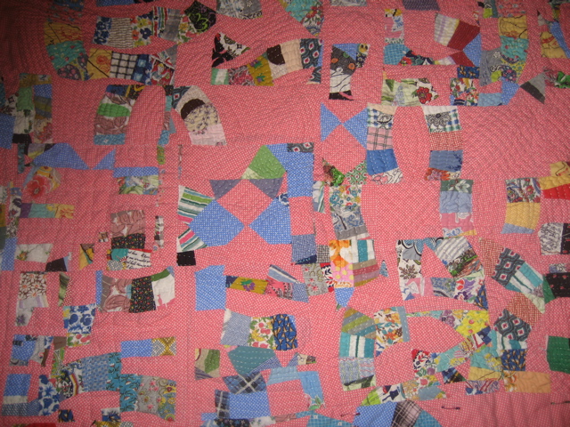 and the pink one I’m almost done hand quilting made from a dilapidated wedding ring from Goodwill in 1980 that I reassembled this summer at Project Space 3