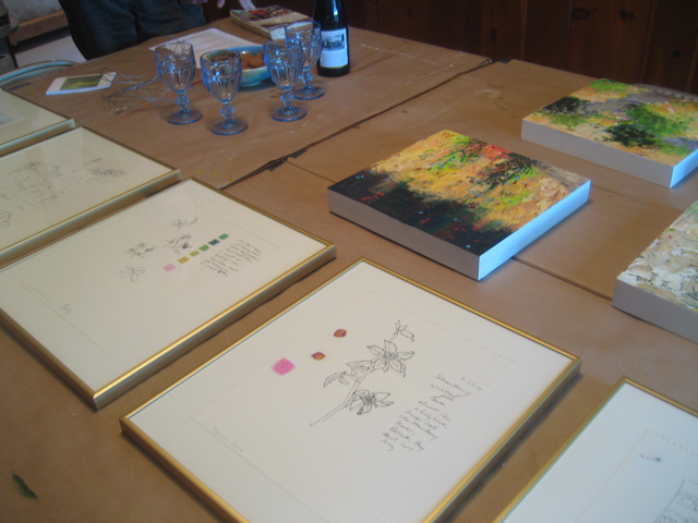 Just about a year ago I went out to Cynthia Herron’s studio with biologist/writer Sharon Rose. Cynthia was beginning a year of painting drawn from Sharon Rose’s book about watching the biological cycles at Minto island (Salem’s truly wonderful treasure of a Park). The work is complete and the show opens November 3 at the Elsinore Framing & Art Gallery