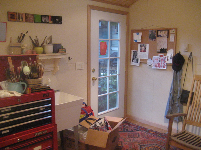 and helped us move in all the stuff.Β  After sifting through the boxes and bags hurriedly packed when I left both the Annex and the cottage studio, I managed by day’s end to get the place pretty well set up…take a look