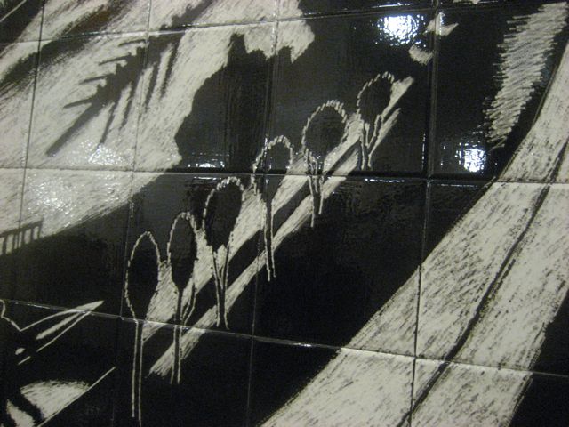 Towards evening we walked over to the restaurant Gruner (527 SW 12th…I took no photos but it was beautiful and delicious) to meet friends, stopping at the Multnomah County Library to take a look at George Johanson’s terrific tile mural of downtown Portland