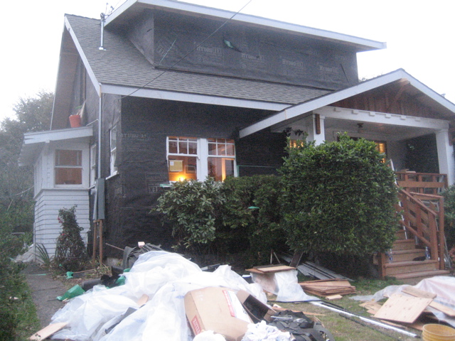 and then last fall the work started on the project of raising the roof and making a squinchy attic into a new living space