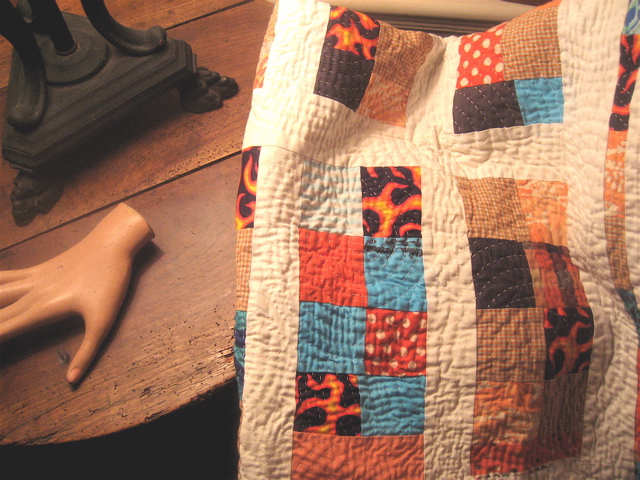 I spoke to LeeAnn on the phone tonight and she suggested a few things I might want to put on my blog instead of worms…like quilts (secretly I really liked the worms…). I’ve been sitting with my Mom this week quilting on the Gee’s Bend quilt I made in 2009 in Sisters…I LOVE the 50’s flame fabric(!!). It’s coming along but not yet half done…slow but steady…