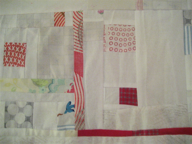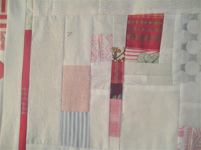 This winter I started a white quilt. I really don’t use white much, so have resorted to various odd scraps and then turning the fabric over which in some cases has resulted is a kind of interesting look: