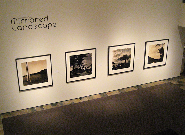 the beautiful, sepia, large format photos are playing off of her interest in old photographs and her feeling of the unsettling mystery of landscape…all used to wonderful effect in this show…really a must see…here are my not-too-good photos (with mirrored reflections) of her beautiful photos…all of landscapes in Florida