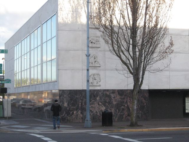 Our bank building dates from 1940-41 and I think the comments from Capital Taps and from Frankie are making me think that the bank was a commercial architectural response to our new state capitol building, built 1938. Marble, white, relief sculptures on the front (Belluschi often worked with Littman but the ones on the state building are by Leo Friedlander) BUT…with this wonderful wall of large north-facing windows clad in aluminum…the hallmark of the Equitable building…a building which by 1948 has become ALL windows. (Frankie by the way, like David Duniway, has fought the good fight…let me say here.) Capital Taps…I have heard over and over again through the years about the “bunker-like” aspect of this building but I don’t see that at all. The interior is fairly soaring with all the windows…I used to bank there years ago…first interstate maybe…