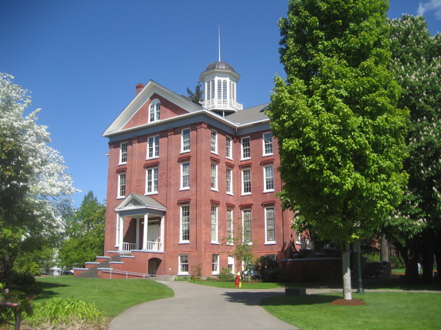 This building was built about 1864 and has served many uses for the university over the decades (including residence early on). The money for the initial building was raised by A.F. Waller, missionary minister and circuit rider, who also built and lived in our house. The bricks for Waller Hall were made from the soil on the construction site. Currently the building houses administrative offices of various types, and Sharon and I were meeting with Emily Oliva who is designing the brochure for the Lord and Schryver exhibition opening at the Hallie Ford Museum in June. We met Emily in the conference room