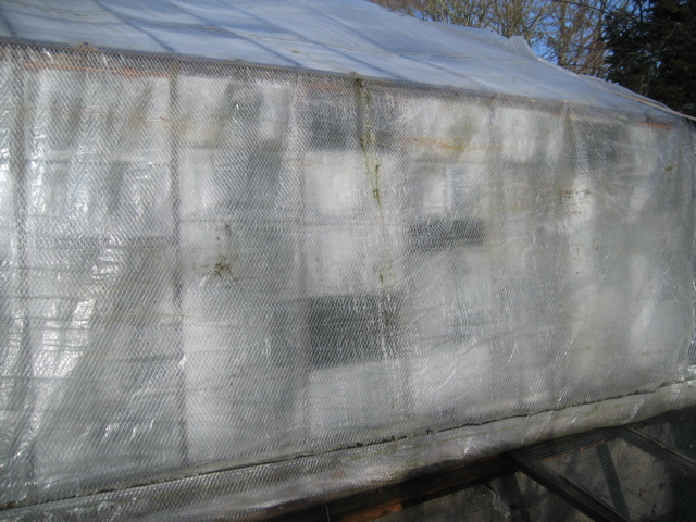All the glass has been splattered with white wash…an old technique to keep the greenhouse from getting too hot…then during the course of the season the white wash washes off, and is renewed next spring: