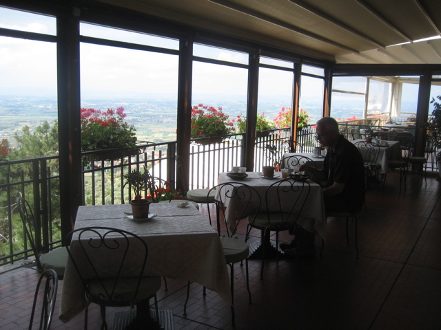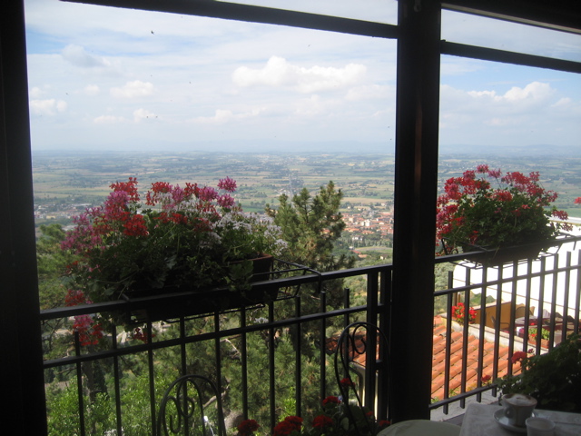 Yes, the first cappuch…a welcome sight on the first morning. We over-slept and while the whole group was touring Cortona we sat in the breakfast room drinking in the views with the coffee.