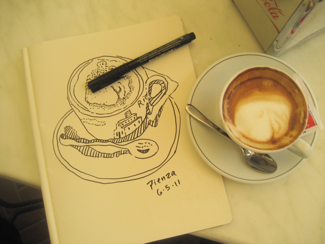 and the next week we were back in Pienza again with friends for coffee at the same place…