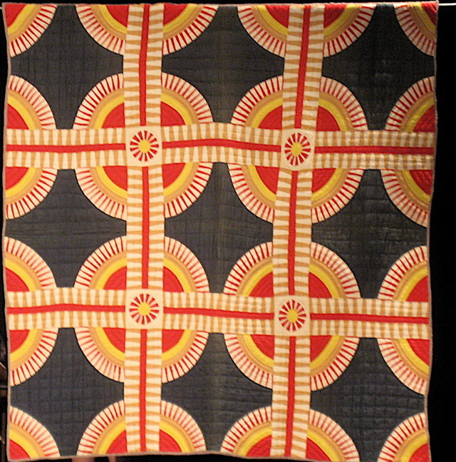 and here’s the “mystery quilt” I talked to Bill V. about. Is it an Andrea Balosky quilt (a sort of wonky “Drunkard’s Path”)? Is it a found piece??? The plot thickens!
