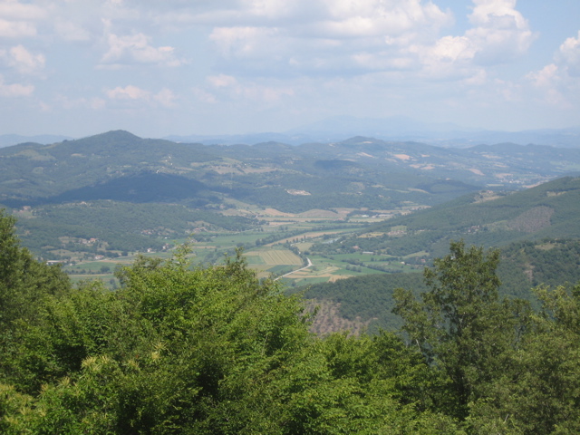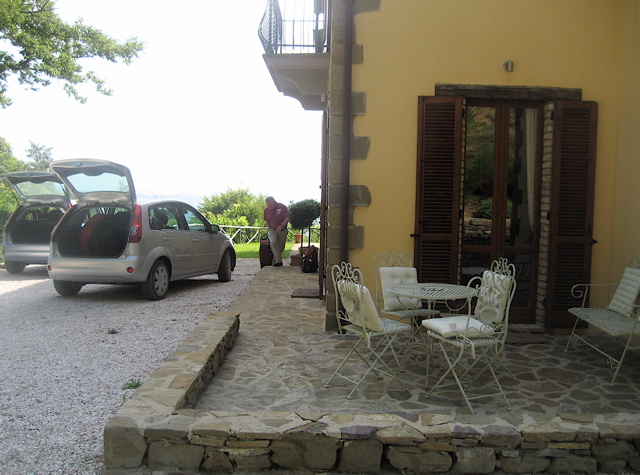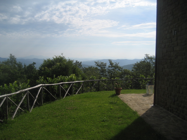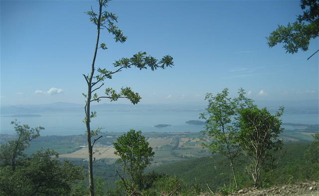 We soon picked up our little rental car and met up with our arriving friends, and in a tiny diesel motorcade we proceeded to the Villa Forconi. On the way there down the long winding road, we had this view of Lago di Trasimeno.