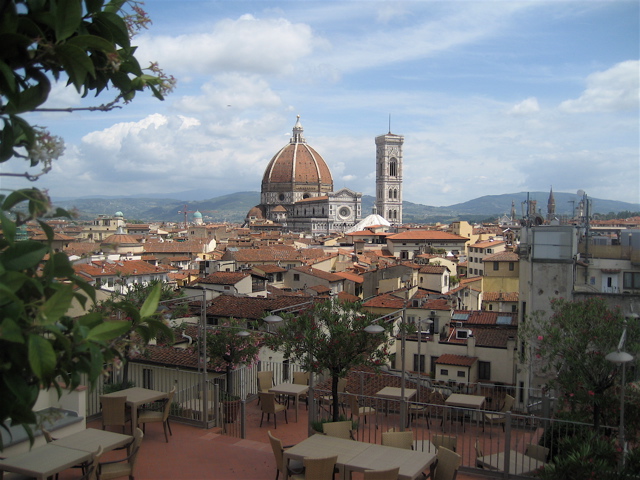 I promise this is the last chapter of our Italian adventure…for this year anyway! Well after our fabulous “groupo” took off, we had a brief but lovely four days in Florence (here a view from the roof garden atop the Hotel Grand Baglioni),