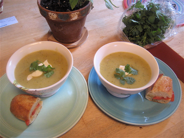 Garnish with yoghurt or sour cream and cilantro or basil.  Here seen with Greek yoghurt and cilantro.  Easy, fresh, YUM.