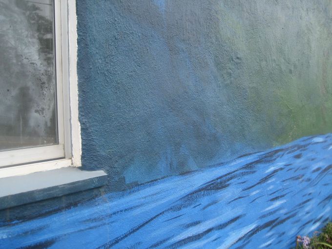 I was reading an article in the Thursday NYTimes by Roberta Smith this morning about “inadvertent galleries” around Manhattan…empty showcase windows, a parking area under the High Line, etc.  So feeling the need for a little drama, I hit on the idea of giving you a sort of Aaron Siskind-esque tour of some of the Lincoln City murals….kind of like this…