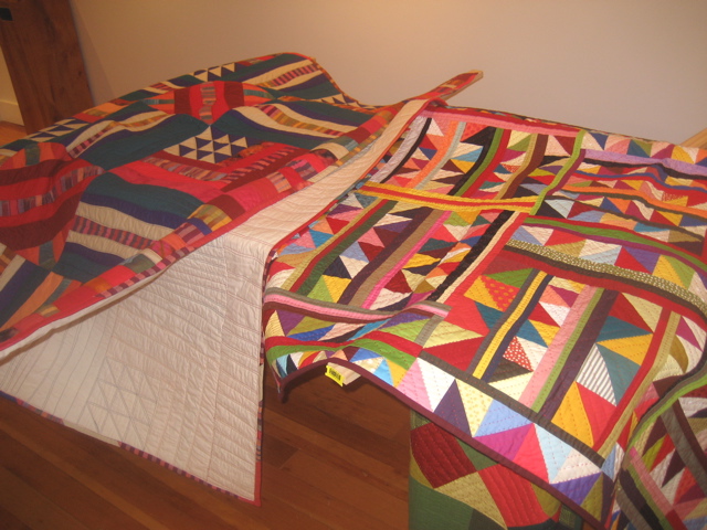 I headed over to Bush Barn to see how the show was coming…yesterday they painted the two walls red, as Kate and I had wanted, and today the quilts were going up…