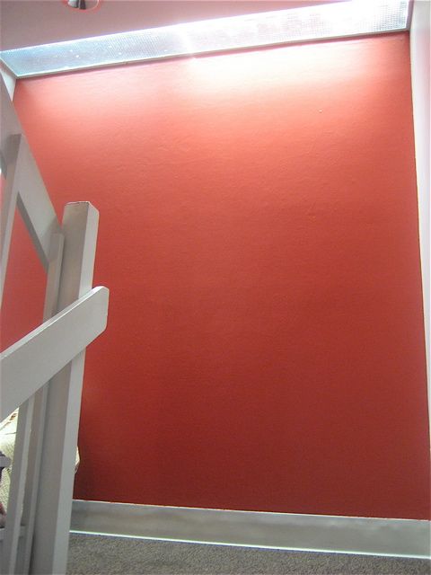 Here’s the stairwell where there will be lettering, and where Kay Worthington’s quilt will hang…