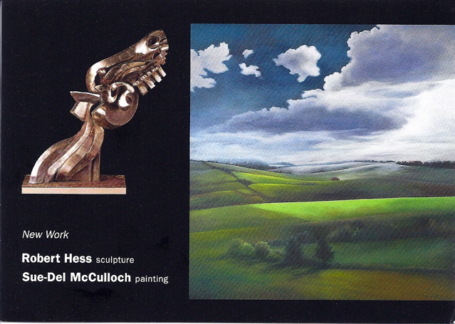 Two old friends have a show up this month…sculptor Robert Hess showing new work in bronze, and painter Sue-Del McCulloch with her big exploded landscapes taking the space by storm: