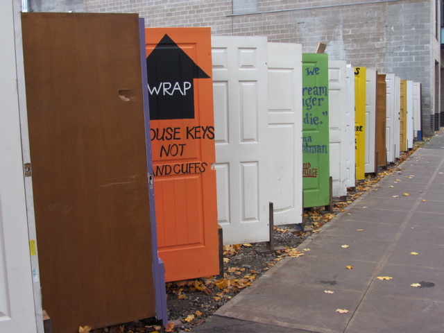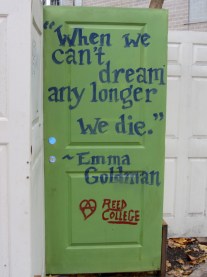 Steve’s been doing some pro bono work for the Occupy movement here in Portland and there was much talk of Occupy, and also of the new, well managed, and SAFE homeless “park” (“camp”?) on Burnside. (The needs of the growing legions of homeless has really been highlighted as a result of Occupy.) We did a drive-by after breakfast and found the encampment next to the Chinatown gate and a giant foo dog…”right 2 dream…”