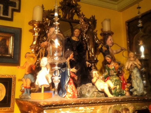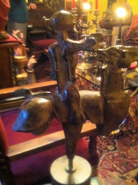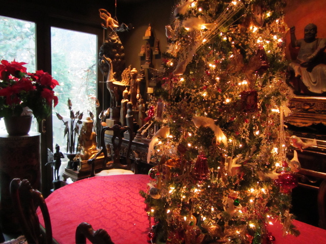 At 3:00 up the hill to Phyllis’s fund raiser for the animal shelter, which had us touring neighbor artist Ken Shores’ AMAZING home full of a lifetime of collecting…and all ready for Christmas…