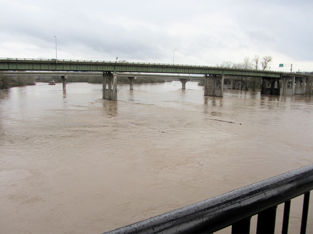 and the river is still 2 feet from flood stage with at least 5 days of rain predicted…(under the bridge at the left of the photo is a paddle wheeler…DOCKED…).