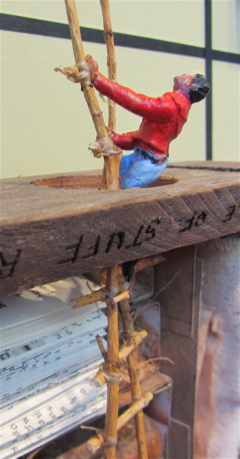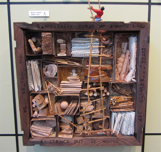 And Kristin Kuhn’s piece…beautifully put together, absence of color except for Cowboy Bob (or whoever he is) peeking out the top, whimsical but NOT cute…