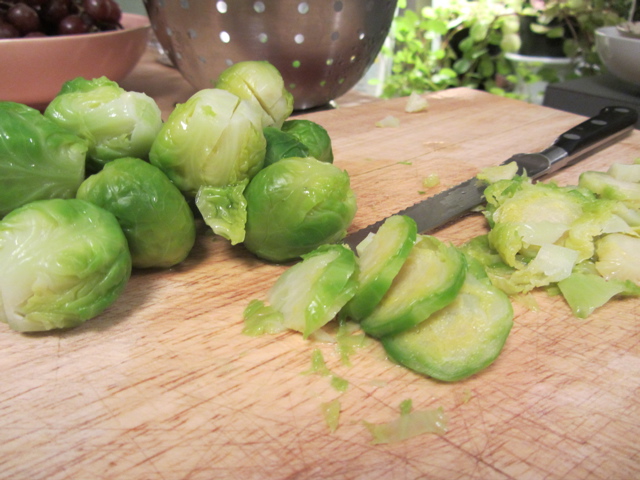 The salad calls for “shaved” sprouts using a mandolin, but for safety-sake I don’t own one of those (I wouldn’t want to jeopardize my ukulele career, after all, by removing a finger tip…). Here’s how I proceeded: