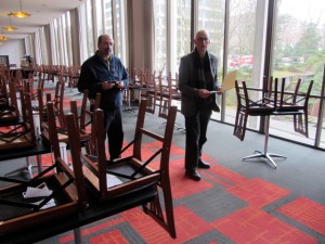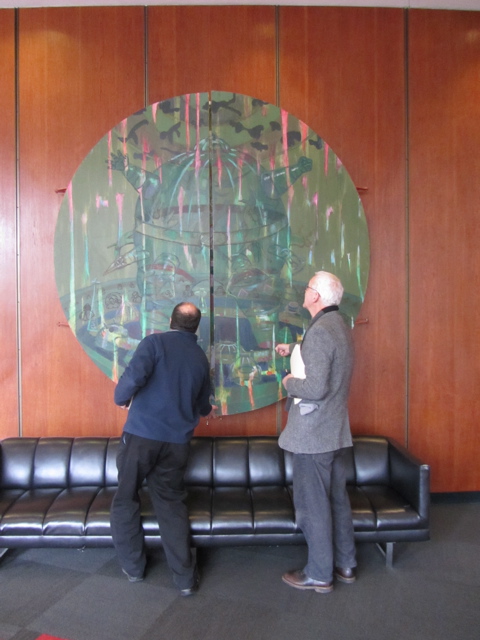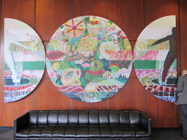 Keith spoke very interestingly of the problems of balancing the practical needs of a venue and changing tastes, with the actual works of art.  He told us the story of a Bruce West sculpture (“Sculpture #1”, 1963) which had been removed from the Keller lobby, taken apart and stored in a rehearsal hall, unbeknownst to RACC.  When this was discovered Keith made an effort to have the piece repaired and rehung in the large rehearsal hall where it really looks BREATHTAKING…