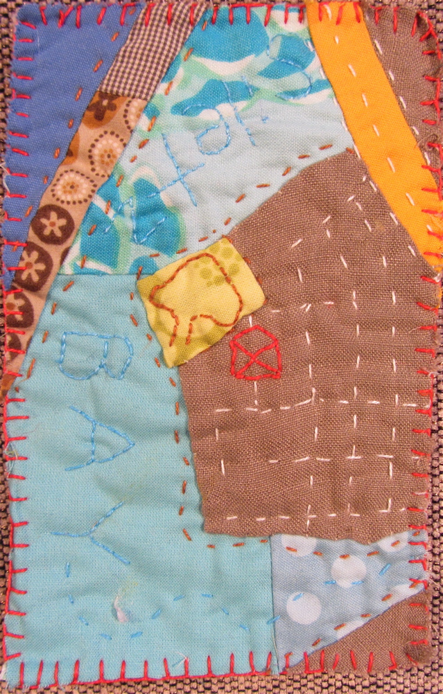 2. This week it was the “Map Project”…to make a map of something in your life (or your head), no bigger than 4″ x 6″, has to fold and fit in an envelope. I did mine in fabric and am about to send it in…it’s the map to Cutler City (a little known coastal treasure…) At Art House Co-op they display and then archive everything that’s sent in, and I kind of like the thought of a growing pile of small work over in Brooklyn by…yours truly.