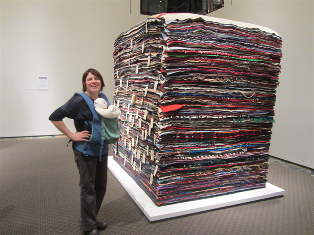 My final picture of the 2012 version of “Dwelling” with the artist Marie Watt, her daughter Evelyn, and the big stack o’ blankets.