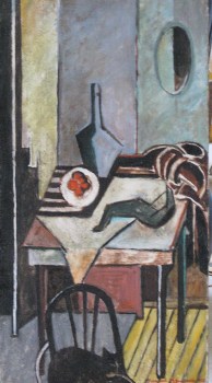 R had a black & white photo of an early piece called “Antonia” that was in the Portland Art Museum’s “Artists of Oregon Show” of 1951. He had no idea what had become of the piece, but was sure he’d use the black and white photo in the book, and…VOILA!