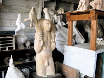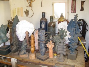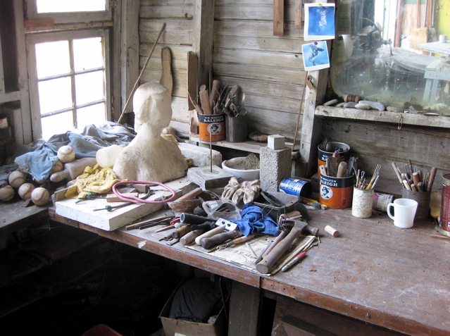 If I wrote everyday about what goes on when a writer is in research mode, I couldn’t really get at it…that’s where images are so very helpful… Here is an update on the progress R is making on his monograph on Manuel Izquierdo and his work. Last week R visited Manuel’s daughter Sara at Manuel’s studio. We visited before in 2010, but R was thinking another visit to just look, think, examine things, talk with Sara…might be helpful, might shed some light. The old studio, a barn remodeled by Manuel in the mid-1950’s, was where he first worked…all the found windows give lots of light for the work process…