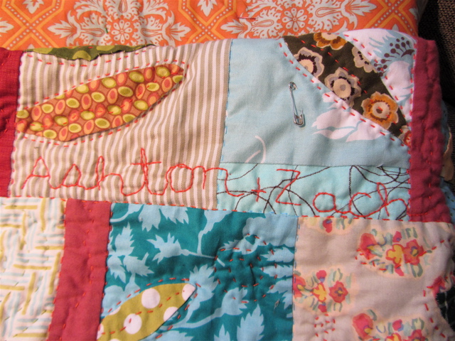 and the wedding quilt with embroidered love messages is an heirloom gift. lucky couple. (san)