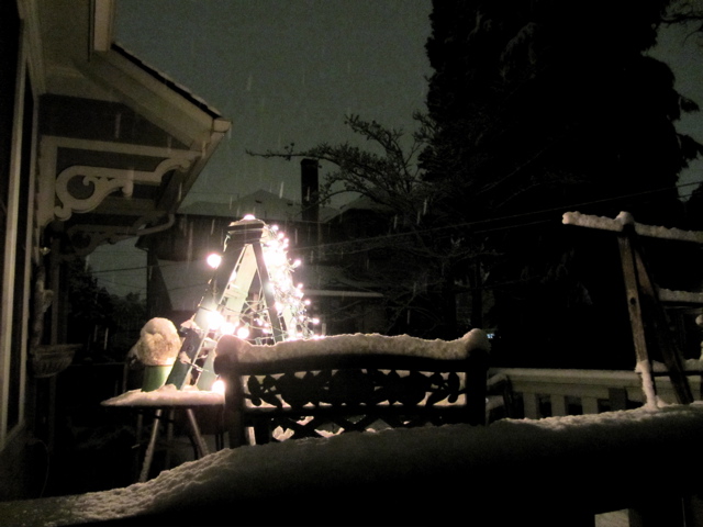 On Tuesday night we heard the excellent James E. Hansen speak at Willamette University giving the annual Dempsey environmental lecture. Hansen is not a totally charismatic speaker, but the message was all the more grave as the audience began to understand that he was spending his life not only in research and writing, but in trying to bring US the message that WE are experiencing the result of global warming NOW, and it will get worse and worse…more floods, more severe storms, loss of animal species…it was frightening. And then yesterday, as a sort of follow up, we had the beautiful snowstorm…that, though, was happening on March 21…