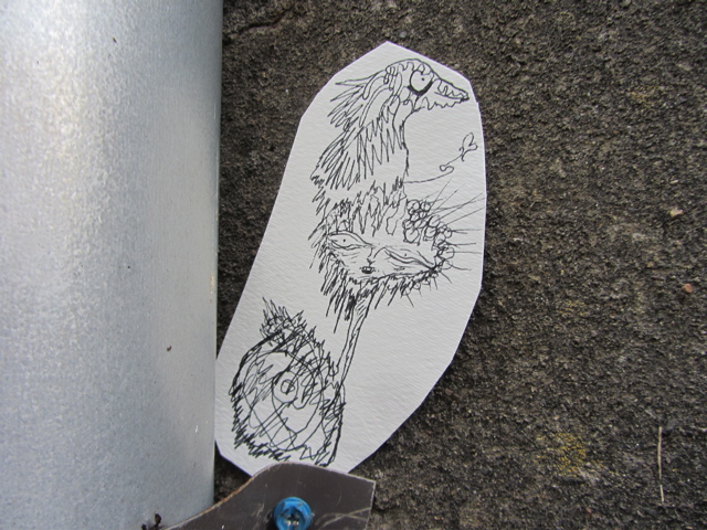 Late in the afternoon we went down to the Zeek Gallery to see the Cuba photos and get a tiny cupcake, but I got to talking and forgot to take pictures…go see. On the way back to the car we ducked through the alley and saw this found drawing stuck behind the downspout of a building…better go find it tomorrow!