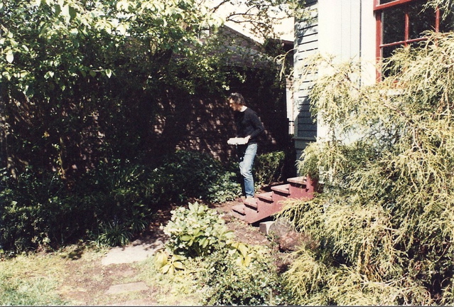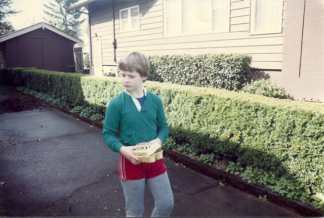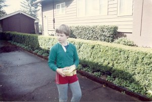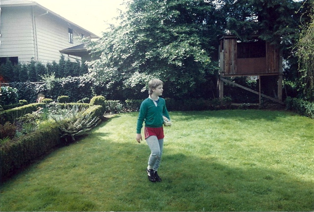 “Back in the day”…in this case, the mid-1980’s, I wasn’t the easter bunny. That was R all the way. Zach and I dyed the eggs, but R hid them for Zach to find. Zach would find them all and then say…”Dad, could we do this again?”…and they would. When I dug out the old photos I noted some changes had been made. We hadn’t become gardeners yet, the old back porch was still on and the new addition to the house wasn’t, we had a tree house in the back yard instead of a studio…check it out: