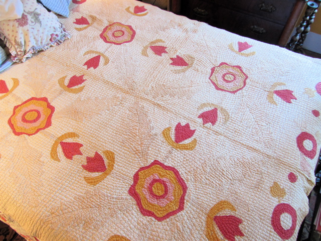 Rose applique quilt is gorgeous! You all are so lucky to have found the treasures. I want to see more of the blues..