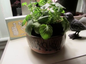 where we covered topics like current work and future projects, plus life in general…before heading off to the Hallie Ford Museum to see Claudia’s painting and my wax piece on view…Cynthia brought a lovely little pot (of her own making) with pansy…