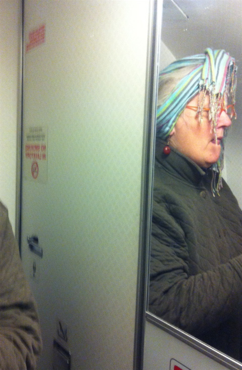 As my trip last week got underway, R sent me a link to the set of Nina Khatchdourian’s photos of herself that she took in the airplane lavatory on a trip to New Zealand…with this brief note “Trip Ideas??” Now SHE is a professional photographer, a good and inventive one, and I’m not…but I DO love to play…and though I try to never put my own image on the blog, these are pretty funny…here’s another view of my trip to Alabama: