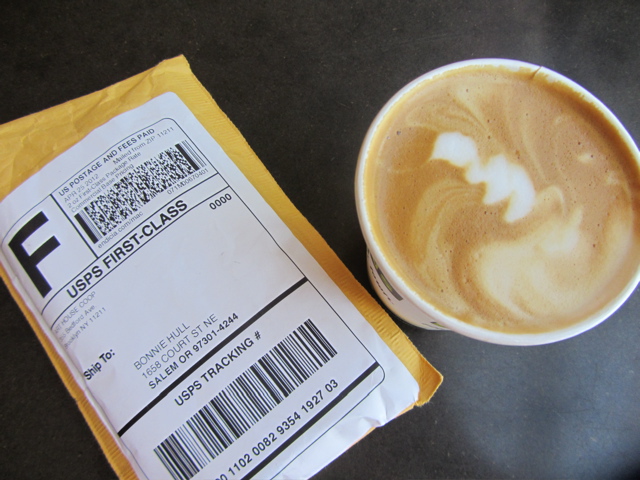 You know I really like Art House Coop and their Sketchbook Project. But all spring I’ve also been doing some of their weekly projects, that have been fun and very amusing. The current one is called “The Mystery Project.” I received a nice Prismacolor marker in the mail along with the instructions which included a “theme” and the instructions to create a small work and install it in a public place, leaving it for somebody to find, while documenting the process. Just about then I got some “packaging” which was a series of little cards. I was having a coffee and trying to think what to do when it came to me suddenly…me, the drawer of hundreds of cups of coffee: