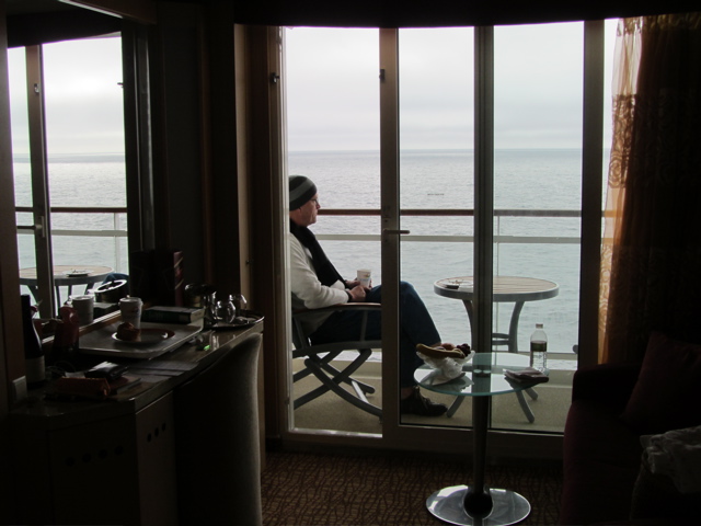 We quickly toured ourselves around the ship and found our favorite spots…like the Constellation Lounge which by day is a terrific sitting room to get a view, to read or (in my case) to draw and sew…and by night is the venue for all sorts of entertainments, most of which we skipped as we ate dinner about 8:00 p.m. with 4 other friends and lingered over glasses of wine and talk of the day’s activities…
