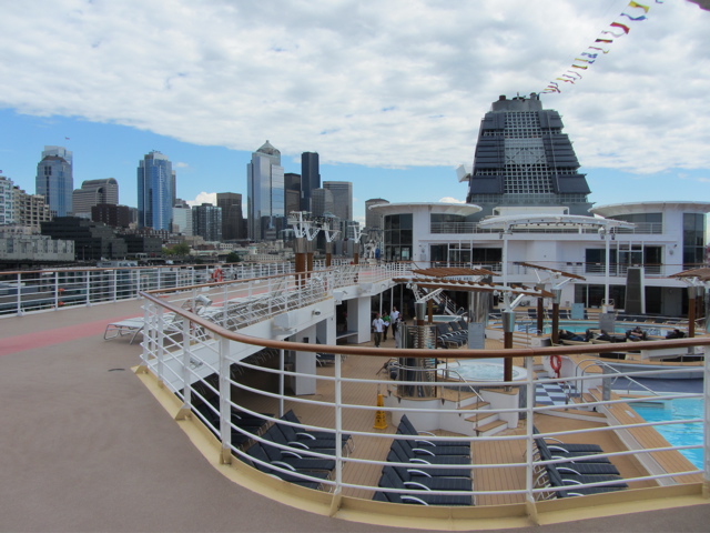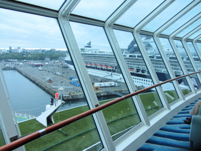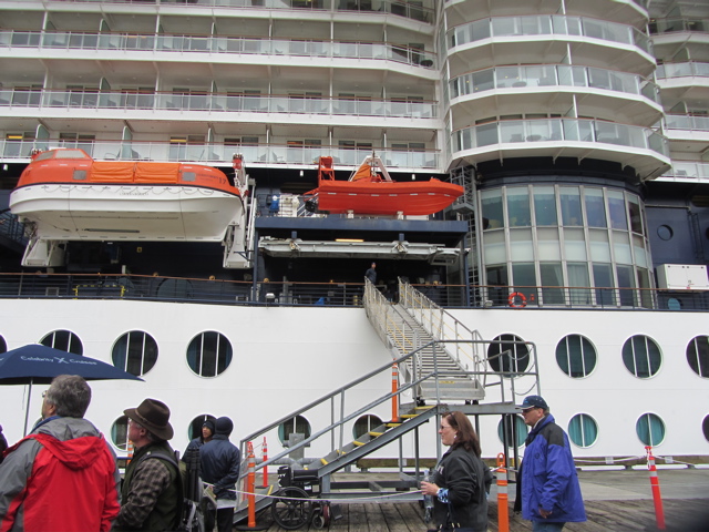 Today I’ll show you the ship though…in our case the Celebrity cruise ship Infinity. It’s about 12 stories tall and dwarfs everything when in dock…we got on board in Seattle…
