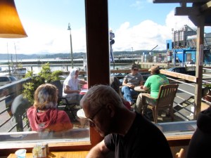 Even at 7:30 on a Saturday morning it was beginning to draw a crowd and EVERYBODY had a camera…it actually was helpful to take a photo of somebody near the dock for scale (HI Susan!)…it’s 66 feet long, 19 feet wide and 7 feet high…and it came from from the port town of Misawa…one of four docks wrenched loose in the Aomori Prefecture on the northern tip of the main island.